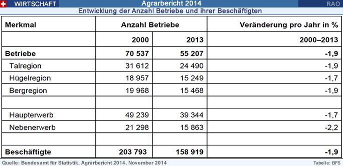 Die Online-Ausgabe des Agrarberichts hält wieder viel Wissenswertes zur Landwirtschaft im Jahr 2016 bereit: Zahlen und Fakten zu den Betrieben und zur Produktion sowie den agrarpolitischen Massnahmen und den Entwicklungen im internationalen Bereich. Der Agrarbericht 2017 bringt für das Jahr 2016 folgende Zahlen zum Vorschein: Die Zahl der Landwirtschaftsbetriebe geht um 1,9 Prozent zurück, die Beschäftigten in der Landwirtschaft nehmen um 1,3 Prozent ab, die landwirtschaftliche Nutzfläche bleibt annähernd stabil und der Tierbestand in Grossvieheinheiten sinkt leicht um 0,4 Prozent. Demgegenüber steigt das Einkommen der gesamten Landwirtschaft um gut 7 Prozent und das einzelbetriebliche Einkommen um rund 5 Prozent. Die Milchproduktion verringert sich um 1,5 Prozent, die Fleischproduktion erhöht sich um rund 1 Prozent und die Eierproduktion steigt um 2 Prozent. Sämtliche Artikel zur Schweizer Landwirtschaft im Berichtsjahr 2016 sind auf der Website www.agrarbericht.ch aufgeschaltet.