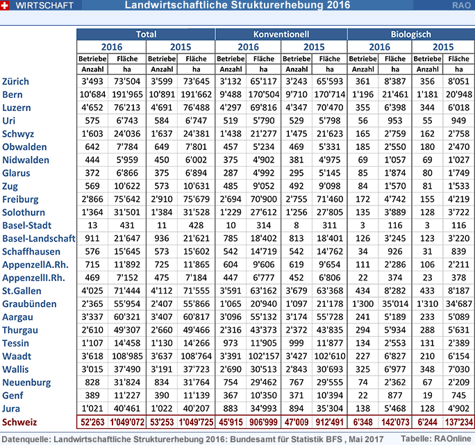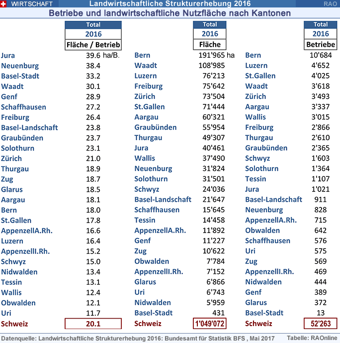 Landwirtschaftliche Betriebe und Nutzflächen 2016
