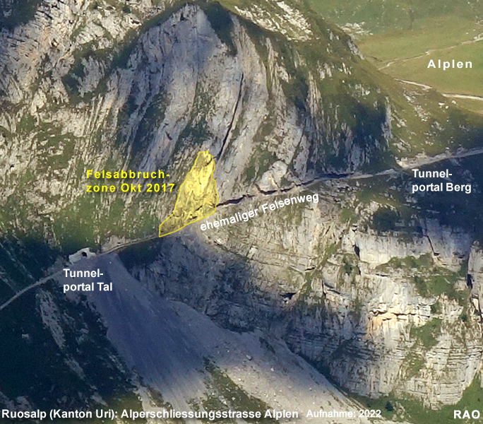 Am 10. Oktober 2017 brach gegen 15.00 Uhr im Gebiet Ruosalp (Gemeinde Unterschächen) mehr als 1'500 Felsmasse auf den Felsenweg zwischen der Ruosalp und Alplen. Dabei wurden drei Personen, die mit dem Ausbau des Weges beschäftigt waren, verschüttet. Zwei Personen fanden bei diesem Ereignis den Tod. Der Felsenweg wurde durch den Felsabbruch vollständig unterbrochen.