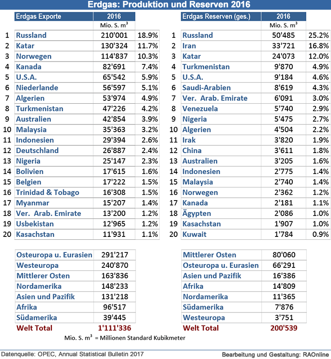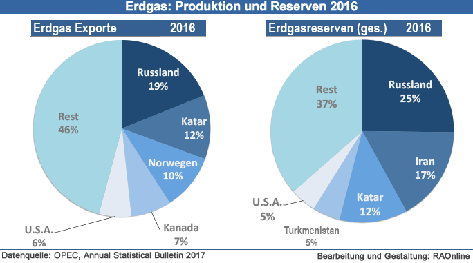 Erdgas, Flüssiggas, verflüssigtes Gas, Export, Förderung, Produktion, Reserven, Erdgasfelder