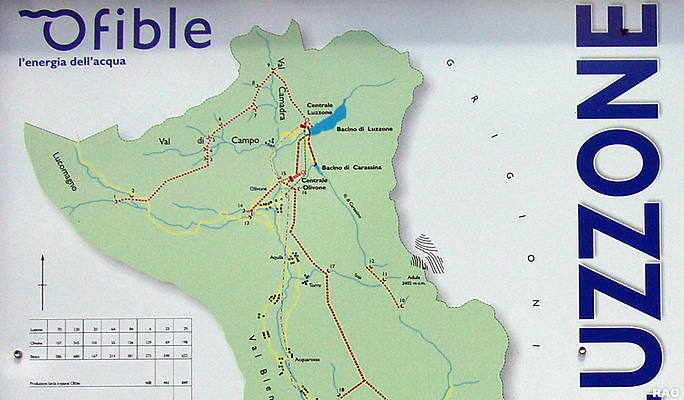 Stausee Luzzone - Kraftwerk Olivone (Tessin) - Verbundsystem zur Wassernutzung und Energiegewinnung Region Olivone
