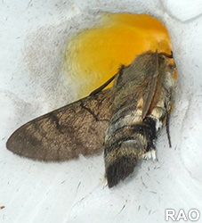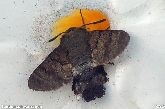 | Der Schwärmer besitzt einen Saugrüssel, mit welchem er im Schwirrflug in Blüten saugen kann |