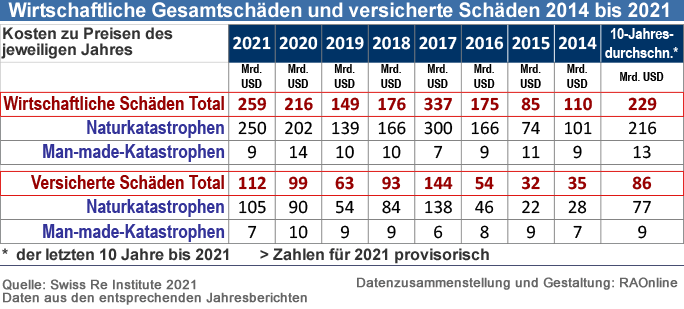 Swiss Re Institute schätzt weltweite versicherte Schäden aus Katastrophen im Jahr 2021 auf 112 Mrd. USD - die bisher vierthöchste Jahressumme