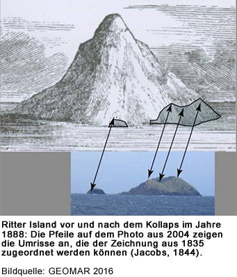 Wissenschaftlerinnen und Wissenschaftler unter Leitung von Prof. Dr. Christian Berndt vom GEOMAR Helmholtz-Zentrum für Ozeanforschung Kielin den kommenden vier Wochen mit dem deutschen Forschungsschiff SONNE die Westflanke von Ritter Island in der Bismarcksee im Westpazifik genauer untersuchen. „1888 sind beim Kollaps der Westflanke der Insel etwa fünf Kubikkilometern Material bewegt worden", erläutert der Geophysiker Christian Berndt. „Damit ist die Rutschung der grösste historisch belegte Flankenkollaps eines Vulkans", so Berndt weiter..