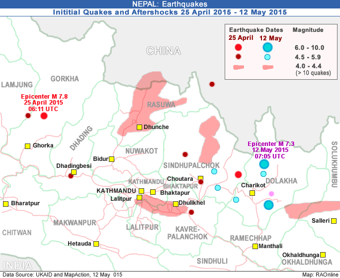Das Beben vom 12. Mai 2015 ist das bisher stärkste Nachbeben nach dem Hauptbeben vom 25. April 2015. Nach Augenzeugenberichten dauerten die Erderschütterungen besonders lang.