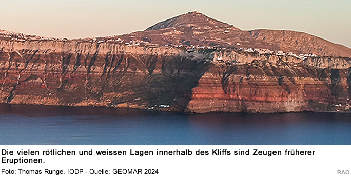 "Die spätbronzezeitliche Eruption von Santorini beispielsweise vor rund 3'600 Jahren hat vermutlich den Untergang der minoischen Zivilisation auf Kreta eingeleitet - ein wichtiges Ereignis sowohl für die Vulkanologie als auch für die Archäologie", sagt Privatdozent Dr. Steffen Kutterolf, Vulkanologe am GEOMAR Helmholtz-Zentrum für Ozeanforschung Kiel. Er hatte gemeinsam mit Dr. Timothy Druitt von der Université Clermont-Auvergne die Fahrtleitung bei der Expedition nach Santorini. Rund um die Insel hat das internationale Team von Wissenschaftler:innen dabei eine neue Ablagerung entdeckt, die auf eine noch viel grössere unterseeische Eruption vor etwa 520'000 Jahren hinweist.