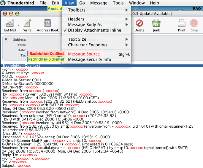 aufgeführt, wie diese Daten, so genannte Kopfzeilen, aus dem E-Mail