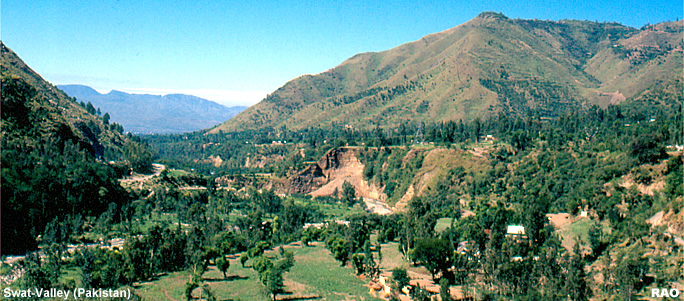 - in der Provinz Khyber Pakhtunkhwa (Distrikte Charsadda und Swatin der Region NWFP= Northwest-Frontier-Province) über 400 mm