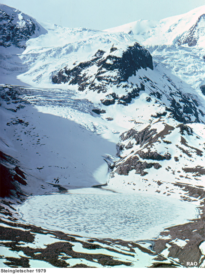 und 2000 verloren die Schweizer Gletscher 18% der Fläche, alpenweit