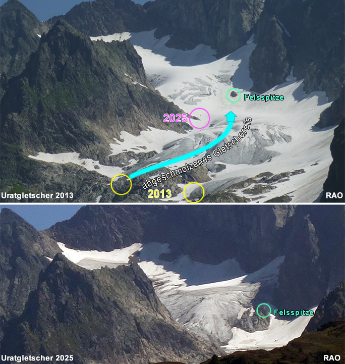 Gletschereisrückgang 2013 bis 2025