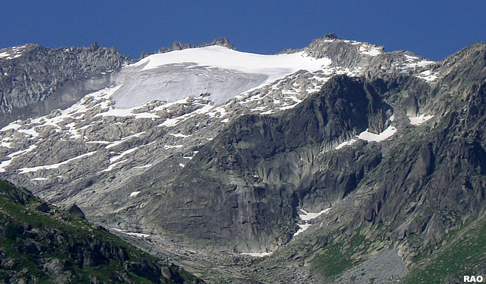 Gletscherschwund: Gletscherfirn am Lochberg, Rückzug in die Gipfelregion (2006)