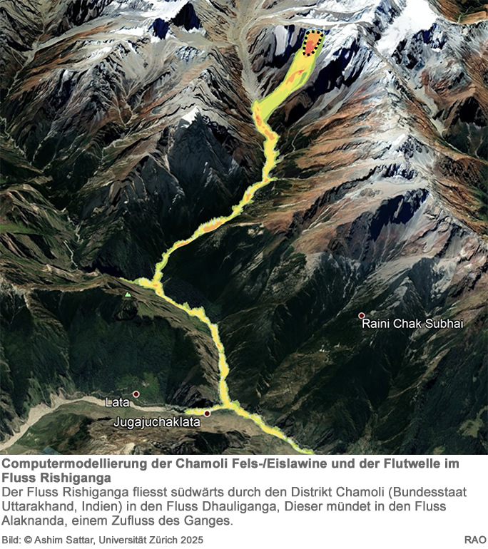 Die Forschenden der UZH arbeiten seit vielen Jahren im Indischen Himalaya und wurden schon wenige Stunden nach dem Ereignis vom Nationalen Katastrophenmanagement der Indischen Regierung kontaktiert. In den darauffolgenden Tagen konnten sie bereits erste Erkenntnisse zum Ablauf und den involvierten Prozessen an die Indischen Behörden übermitteln. «Unsere Berichte und Einschätzungen wurden unter anderem dazu genutzt, die Untersuchungen vor Ort zu planen» sagt Frey.