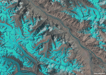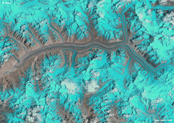 | Frank Paul, Glaziologe an der Universität Zürich, hat mit Hilfe von Satellitenbildern das Verhalten von Gletschern aus den vier Regionen Baltoro, Panmah, Skamri–Sarpo Laggo und Shaksgam im Karakorumgebirge in Pakistan beleuchtet. Der Glaziologe verwendete für seine Untersuchung Bilder von drei verschiedenen Landsatsatelliten, welche vom US Geological Survey (USGS) und der NASA betrieben werden. Die Satelliten überfliegen das Gebiet alle 16 Tage. |