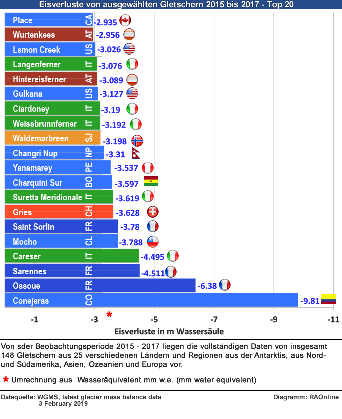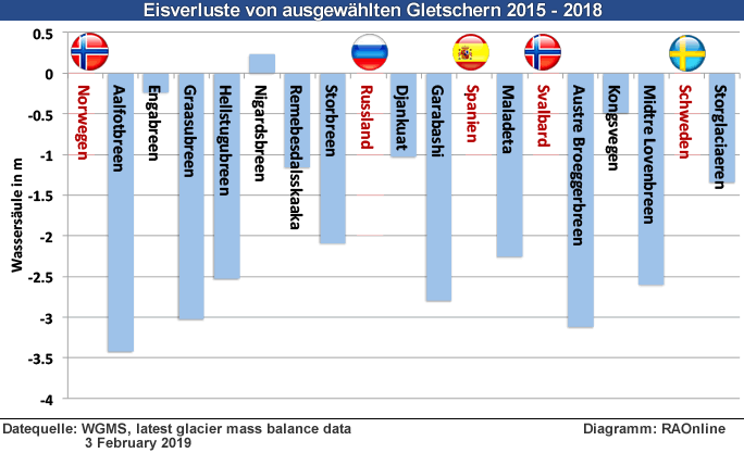 Das grosse weltweite Gletscherschmelzen 2015 bis 2018