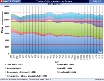 Brenn- und Treibstoff-Verbrauch der Schweiz 1979 - 2009
