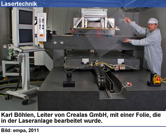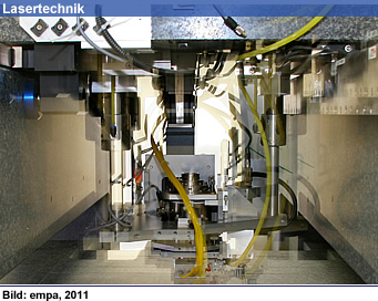 Herzstück der von der Empa in enger Zusammenarbeit mit der Firma Crealas GmbH betriebenen Anlage - eine von weltweit gerade einmal drei - ist ein gepulster Ultraviolett (UV)-Laserstrahl, der auf bis zu drei Quadratmeter grossen Oberflächen nanometerdünne Schichten präzise abträgt. Als Unterlage dient ein 19 Tonnen schwerer Granittisch, der im Oktober 2010 in einem spektakulären Transport nach Thun gebracht wurde.