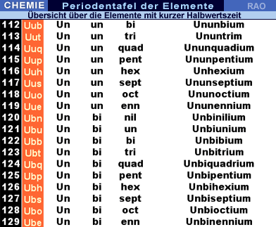 schlugen fehl. Der Grund liegt darin, dass von den neuen Elementen sich