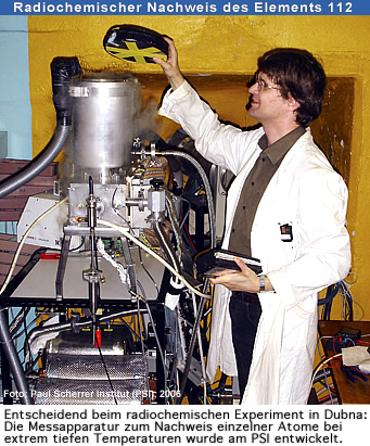 dem Experiment wollte das Forschungsteam die Entstehung des neutronenreichen Isotops des Elements 112 in dieser Kernreaktion erstmals unabhängig bestätigen