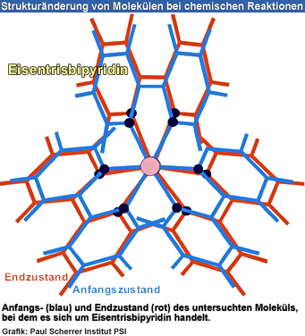 | Forscher der ETH Lausanne (EPFL) und des Paul Scherrer Instituts (PSI) haben als erste "live" verfolgen können, wie sich die Struktur eines komplexen Moleküls während einer chemischen Reaktion verändert. Darüber berichten sie heute in der neuesten Ausgabe von ScienceExpress - der Online-Ausgabe des Wissenschaftsmagazins Science. In ihrem Experiment haben die Forscher mit Röntgenpulsen, die nur wenige Femtosekunden lang waren, die Strukturen abgebildet, die das Molekül auf dem Weg vom Anfangs- zum Endzustand einer Reaktion durchläuft. Die Pulse wurden an der Synchrotronlichtquelle SLS des Paul Scherrer Instituts in Villigen erzeugt. |