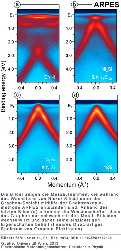 Das "Wunder"-Material Graphen verheisst einen vielfältigen und weitreichenden Einsatz in der Elektronik der Zukunft, das die traditionelle Silicium-Technologie ergänzen oder sogar ersetzen könnte. Physikern an der Universität Wien ist es nun gelungen, eine neuartige Struktur aus hochwertigem Metall-Silicid zu erzeugen, die von einer schützenden Graphen-Schicht bedeckt ist. Ihre Methode könnte wegweisend für die Materialwissenschaften werden. Die Forscher der Gruppe "Elektronische Materialeigenschaften" an der Fakultät für Physik und ihre internationalen KollegInnen veröffentlichten ihre Ergebnisse im neuen Open Access Journal des renommierten Verlagshauses Nature: Scientific Reports.