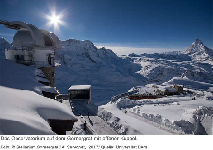 «Zusammen mit Astronominnen und Astronomen an der Universität Genf haben wir uns überlegt, wie man diesen doch einmaligen Standort auf dem Gornergrat weiterhin nutzen könnte», sagt Dr. Timm-Emanuel Riesen vom Center for Space and Habitability (CSH) der Universität Bern. Zusammen mit der Internationalen Stiftung Hochalpine Forschungsstationen Jungfraujoch und Gornergrat (HFSJG) und der Burgergemeinde Zermatt wurde die Idee eines pädagogischen Teleskops, dem «Stellarium Gornergrat», entwickelt und jetzt in Betrieb genommen.