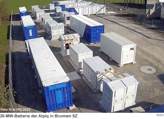 Alpiq stärkt ihre führende Position im Assetmanagement für Kunden: Im Auftrag der MW Storage AG wird Alpiq die gegenwärtig grösste und leistungsstärkste Batterie der Schweiz bewirtschaften und sie auf dem Markt für Systemdienstleistungen zur Stabilisierung des Stromnetzes anbieten. Die 20-MW-Batterie wird im dritten Quartal 2020 in Brunnen (SZ) in Betrieb genommen. (siehe: Netzsicherheit).