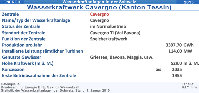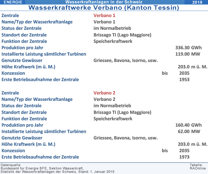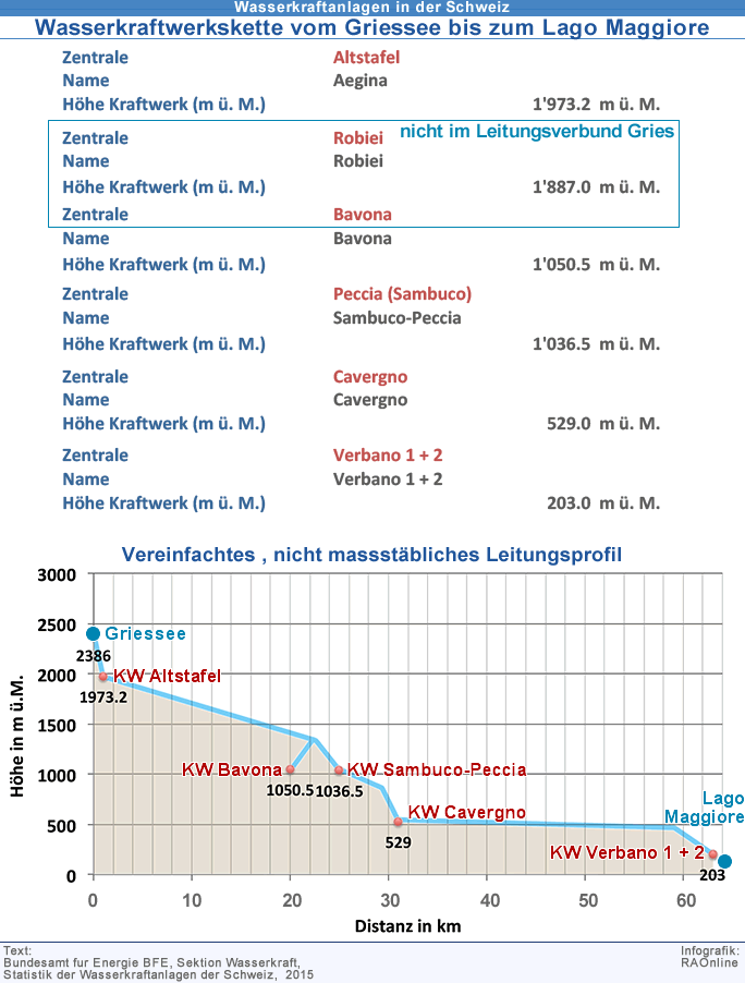 | Wasserkraftwerkskette vom Griessee (Wallis) in den Lago Maggiore (Tessin) |