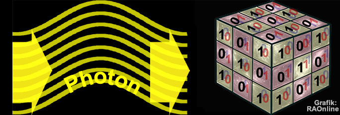 Genau wie grösstenteils auch beim klassischen Internet: durch Lichtteilchen. Diese sogenannten Photonen werden durch Glasfaserkabel geschickt. Beim klassischen Internet verwendet man sehr starke Signale, also Lichtimpulse, die aus Milliarden Photonen bestehen. Die Information wird hier durch einen binären Code übertragen: Licht an oder Licht aus, ähnlich wie bei Morsezeichen.