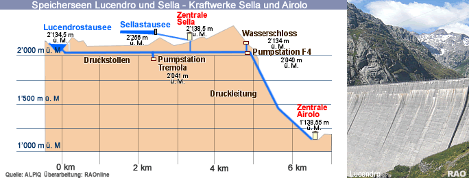 Die Lucendro-Staumauer wurde in den Kriegsjahren 1942 bis 1948 von der ATEL (Aare-Tessin) erbaut. Da in diesen Jahren Zement Mangelware war, wurde die Staumauer nach der Nötzli-Bauart (Pfeilerkopfmauer) erreichtet. Die Staumauer besteht aus 17 riesigen Kammern, welche sich zur Mitte hin verjüngen.