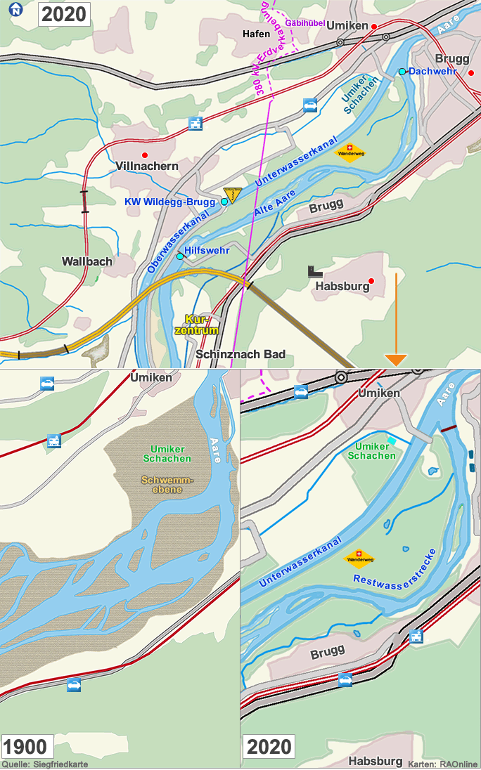 | Quelle: Ausschnitte aus BAFU Auendossier 2008 und Kanton Aargau Auenschutzpark |