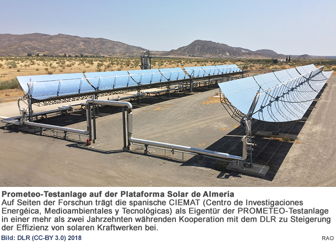 Bei der Zulassung und Markteinführung neuartiger Wärmeträgermedien für den Betrieb in solarthermischen Parabolrinnenkraftwerken gibt es bislang keine einheitlich anwendbaren Normen oder Regelwerke. Grundsätzlich gilt, dass das Medium hinsichtlich seiner chemischen und thermodynamischen Eigenschaften unabhängig qualifiziert sein muss. Die ebenfalls erforderliche Demonstration eines Wärmeträgeröls unter realistischen Kraftwerksbedingungen erfordert darüber hinaus einen erheblichen grosstechnischen Aufwand. In der süd-spanischen Provinz Almería haben Wissenschaftler des Deutschen Zentrums für Luft- und Raumfahrt (DLR) gemeinsam mit internationalen Partnern aus Forschung und Industrie die Praxistauglichkeit und Funktionalität eines neuen, auf Siliconöl basierten Wärmeträgers erfolgreich demonstriert.
