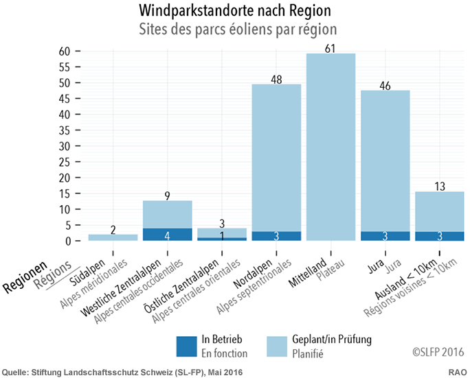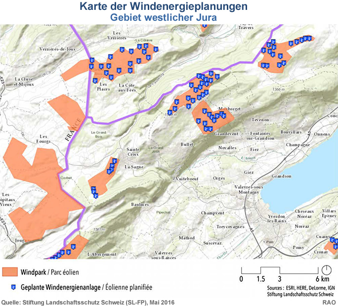 Im Mai 2016 publizierte der Bund im Internet den Windatlas Schweiz,welcher aufzeigen soll, dass in vielen Regionen der Schweiz genügend Wind für die Windenergienutzung vorhanden ist. Die Stiftung Landschaftsschutz Schweiz SL hat eine interaktive Karte entwickelt, welche aufzeigt, wo überall in der Schweiz und im unmittelbar angrenzenden Ausland Windpärke geplant oder projektiert werden. Sie will damit allen Personen und Institutionen, welche sich mit der Windenergie auseinandersetzen, eine schweizweite Übersicht über den Stand der vielen Planungen ermöglichen.