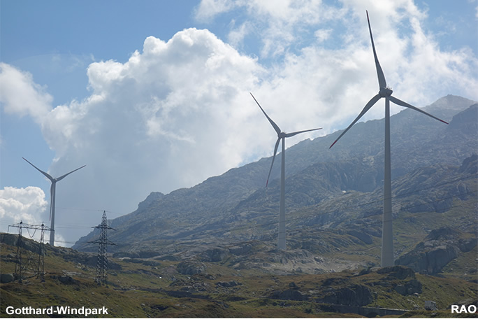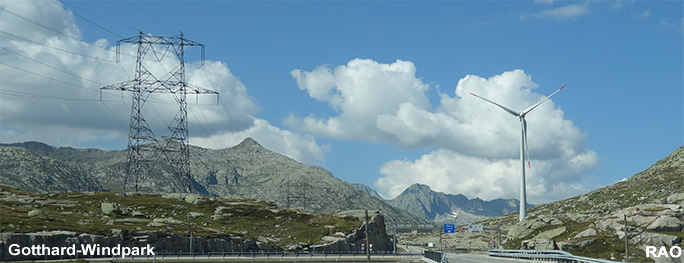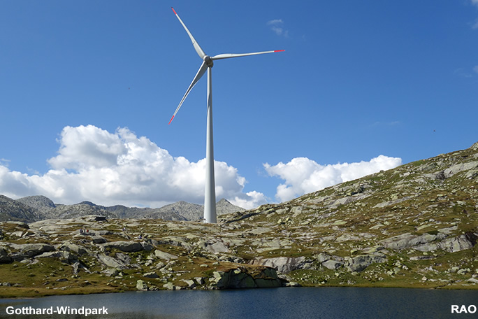 Zurzeit ist der Parco eolico del San Gottardo in der Schweiz der einzige Windpark in Bau. Es dauerte 18 Jahren seit dem ersten Projekt und konnte erst nach einem langen Genehmigungsverfahren mit zahlreichen Rekursen realisiert werden. Die Partner sind sehr zufrieden: das erzielte Resultat stellt einen wichtigen Beitrag dar, um die Ziele des Bundes bezüglich Windproduktion zu erreichen und bedeutet einen konkreten Schritt vorwärts in ihrem Engagement zur Stromproduktion aus erneuerbaren Energien.