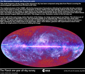 Der ESA-Satellit Planck hat seine erste Aufnahme des gesamten Himmels gesendet, die nicht nur neue Erkenntnisse über Die Entstehung von Sternen und Galaxien liefert, sondern auch über die Geburt des Universums nach dem Urknall.