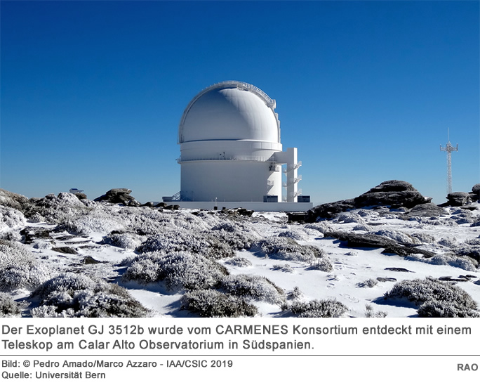 Aufgespürt wurde der rätselhafte Planet von einem spanisch-deutschen Forschungskonsortium namens CARMENES, das sich die Entdeckung von Planeten bei kleinsten Sternen zum Ziel gesetzt hat. Dazu baute das Konsortium ein neuartiges Instrument, das im Observatorium Calor Alto auf 2'100 m ü.M. in Südspanien installiert wurde. Beobachtungen mit diesem Infrarot-Spektrographen zeigten, dass sich der kleine Stern regelmässig auf uns zu und wieder weg bewegteein Phänomen, ausgelöst von einem Begleiter, der in diesem Fall besonders massereich sein musste. Weil diese Entdeckung so unerwartet kam, kontaktierte das Konsortium unter anderen die Berner Forschungsgruppe um Mordasini, die zu den weltführenden Expertinnen und Experten in der Theorie der Planetenentstehung gehört, um plausible Szenarien zur Bildung des grossen Exoplaneten zu diskutieren. Die Arbeit aller Beteiligten ist nun in der renommierten Fachzeitschrift Science veröffentlich worden.