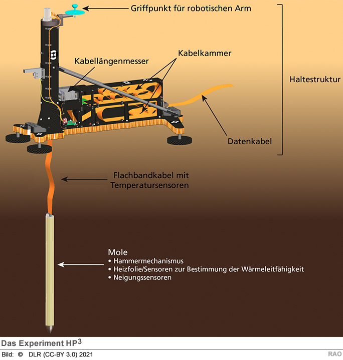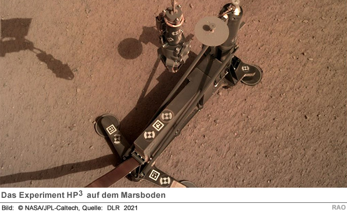 HP3 ist eines von mehreren wissenschaftlichen Experimenten an Bord der InSight-Mission, die kürzlich um zwei Jahre bis Dezember 2022 verlängert wurde. Das französische Seismometer SEIS zeichnet weiterhin Marsbeben und lokale, durch atmosphärische Phänomene verursachte Erschütterungen auf. Ein Funkwellen-Experiment sammelt Daten zur Lage und Orientierung der Mars-Drehachse. Es soll Erkenntnisse darüber liefern, ob der Kern des Planeten flüssig oder fest ist. Die Wetter-Sensoren stellen detaillierte meteorologische Daten zur Verfügung. Auch HP3 wird weiter mit einem Teilexperiment arbeiten.