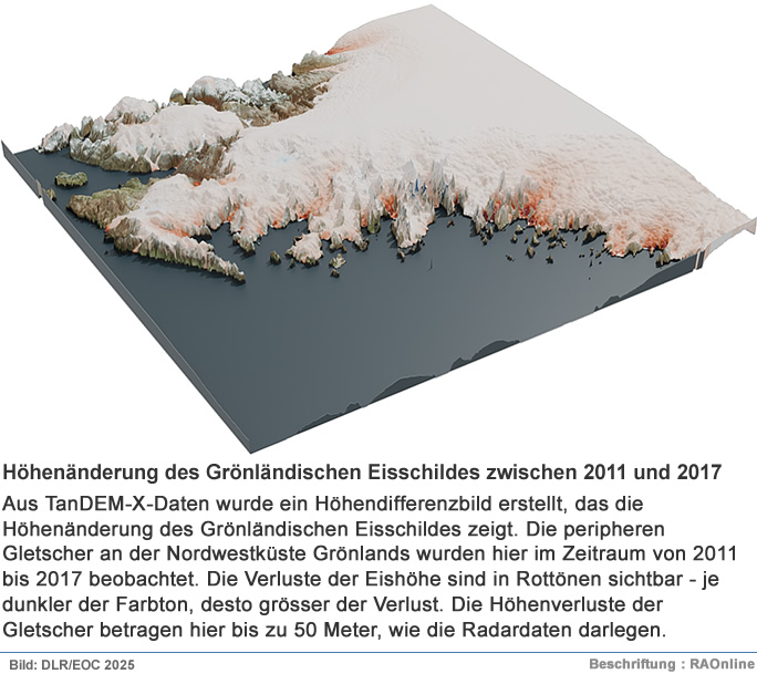Zu den vom DLR untersuchten Regionen weiss Co-Autorin Dr. Sahra Abdullahi: "Mit einem jährlichen Verlust von 35 Milliarden Tonnen Eis seit dem Jahr 2000 tragen die peripheren Gletscher Grönlands, nach Alaska und der Kanadischen Arktis, am drittstärksten zum globalen Gletschermassenverlust bei. Zurückzuführen ist das auf die folgenschwere Klimaveränderung in der arktischen Region, die mit einigen der weltweit höchsten Raten an Temperaturanstieg konfrontiert ist". EOC-Kollege und weiterer Co-Autor Dr. Lukas Krieger ergänzt:
