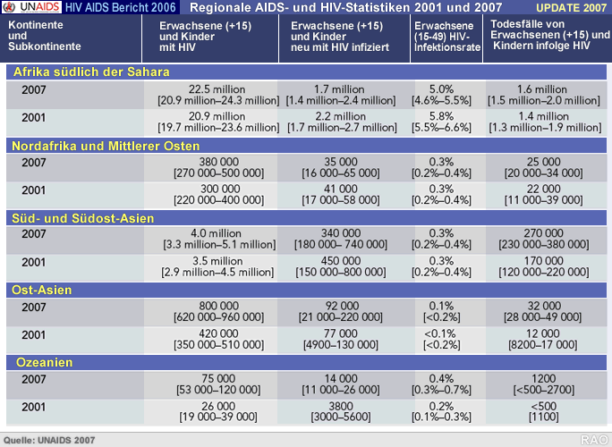 AIDS Epidemic Update 2007 - Globale Übersicht über die AIDS-Epidemie