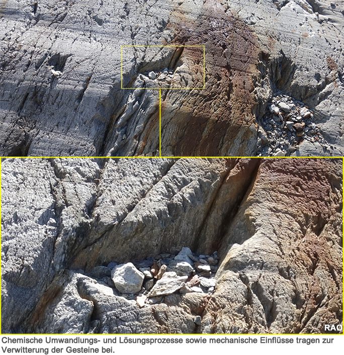 | die Erosion für den Abtransport des Gesteinsmaterials verantwortlich. |
