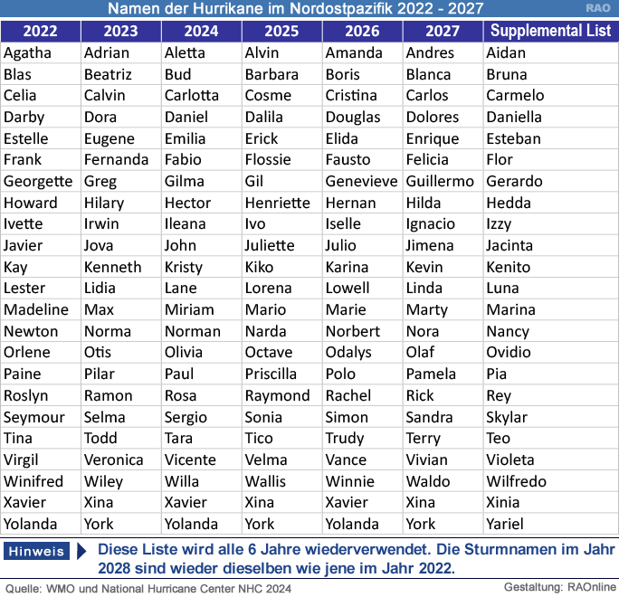 Hurrikane: Namen im Atlantik und im Nordpazifik