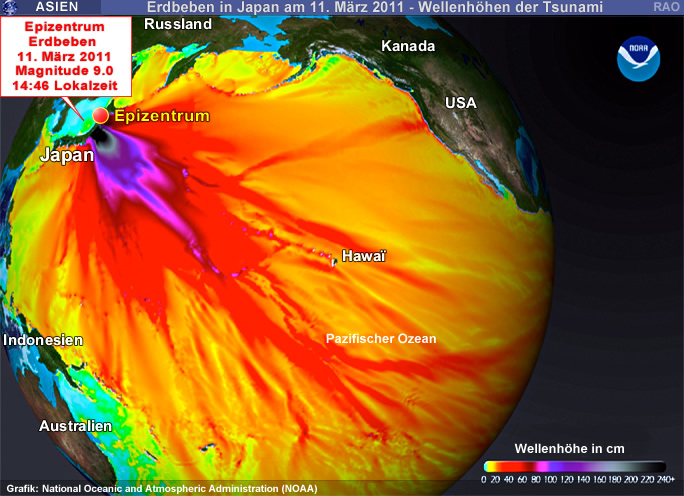 Tsunami-Wellen am 11. März 2011 im Pazifischen Ozean