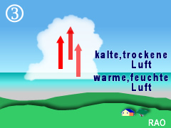 kühleren Luftschichten zu ausgeprägten Haufenwolken. |