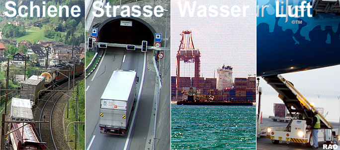 | Kombinierter Verkehr: Luft - Schiene - Wasser - Strasse |