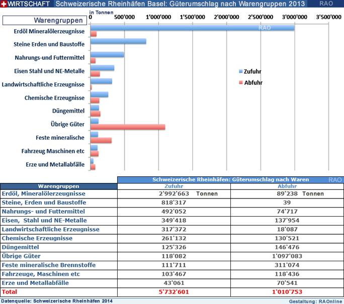 Güterumschlag Schweiz. Rheinhäfen 2013