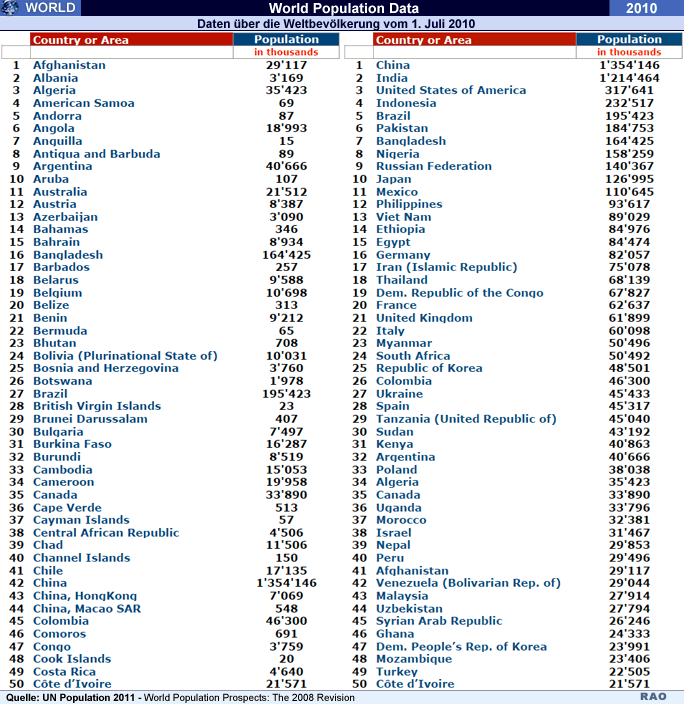 World Population Data 2010 - Downloads