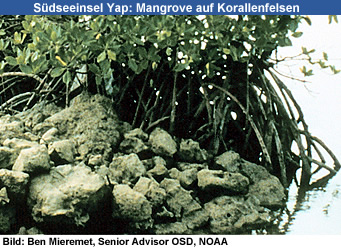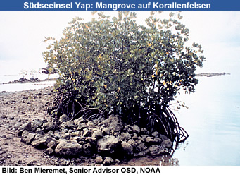 tropischen Gewässern. Mangroven haben Eigenschaften entwickelt, die