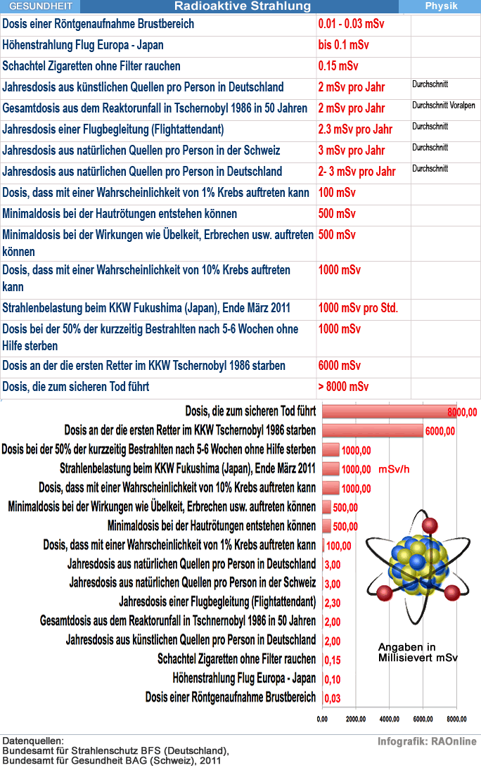 Alpha-Strahlung, Beta-Strahlung, Gamma-Strahlung, Kernstrahlung, Radioaktivität, Aktivitätskonzentration, Strahlendosis, Becquerel, Sievert, Halbwertszeit, ionisierte Strahlung, Grenzwert, Höchstwert, Richtwert,Uran, Jod, Caesium, Plutonium, Radon, Gesundheit, Trinkwasser, Strahlenbelastung, Krankheit, Mensch, natürliche Quellen, künstliche Quellen, Zerfall, |