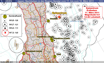 Erdbeben vom 11. März 2011 in Japan: Grafiken und Karten