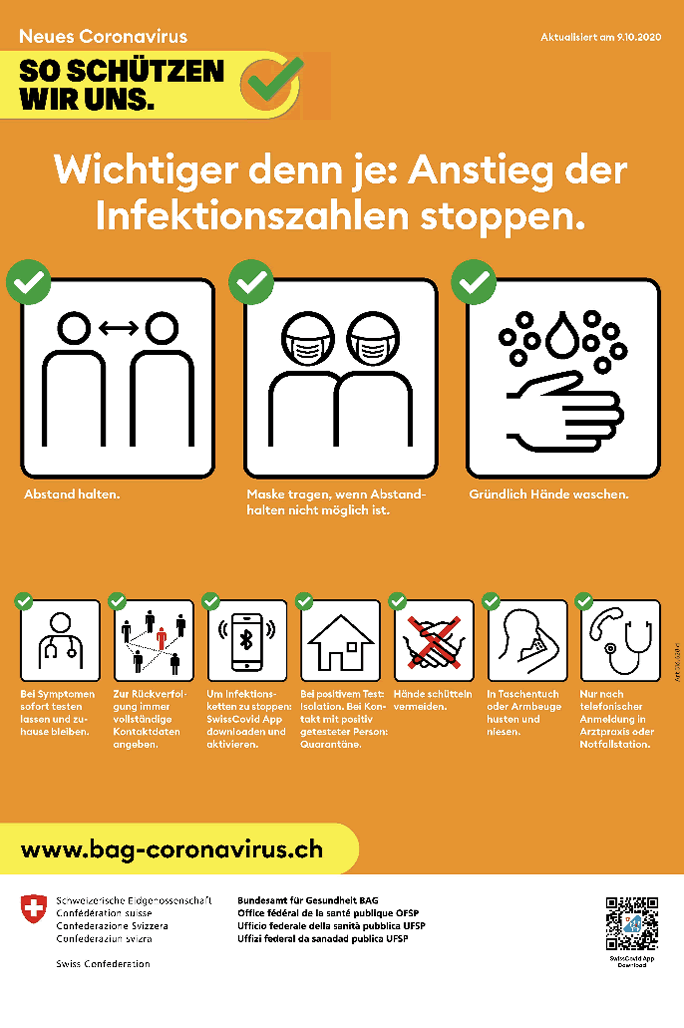 | Quelle: Der Bundesrat und Bundesamt für Gesundheit BAG, 18. Oktober 2020 |