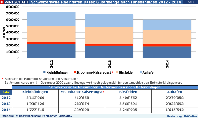 Güterumschlag Schweizerische Rheinhäfen 2011 - 2014